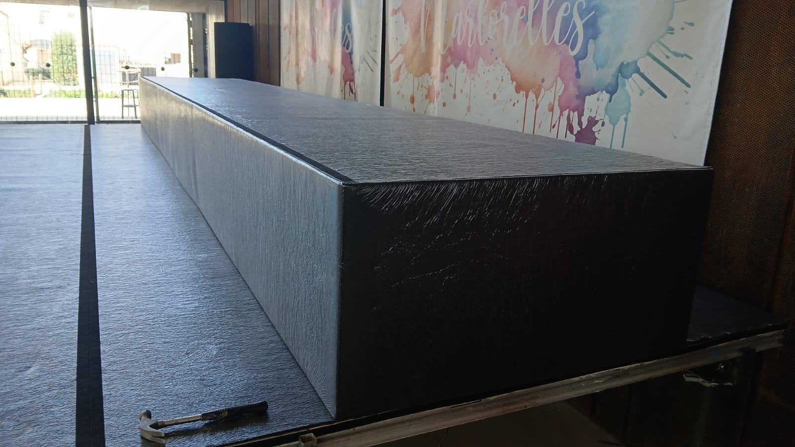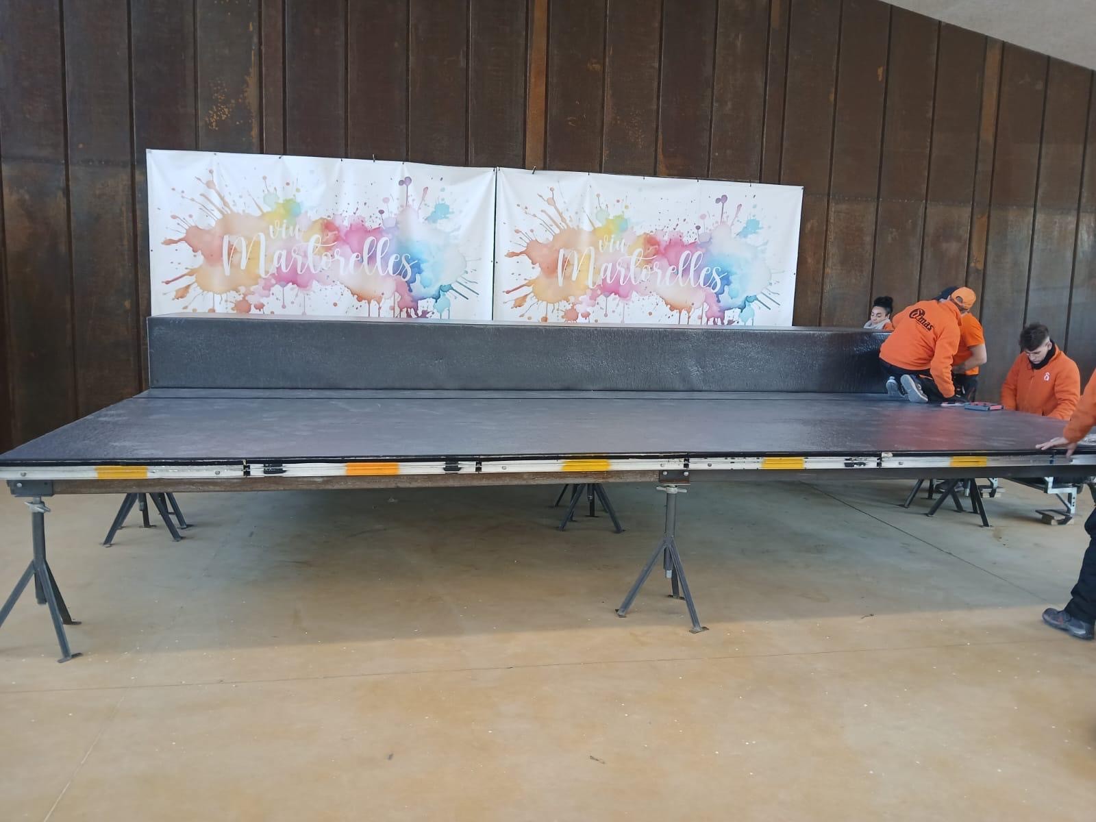 L'empresa d’inserció social DIMAS ha reaprofitat les planxes de conglomerat de l'empresa de disseny i preimpressió Art Gràfic Parera de Montmeló per a construir escenaris i tarimes per a esdeveniments.