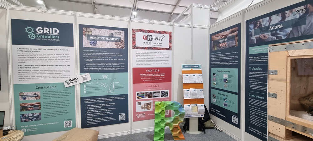 La dissenyadora Núria Vila ha contribuït enguany a la Fira de l'Economia Verda i Circular amb la creació dels rètols d'identificació dels diferents pavellons de l'espai. Per fer-ho ha utilitzat un dels recursos de GRID, les safates de poliestiré expandit, de l'empresa Huayi Compressor Barcelona, S.L.
