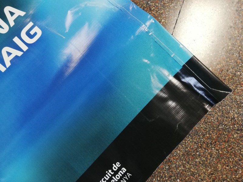 Peces de pvc reforçat provinents de campanyes publicitàries de mida aproximada 1x1,20m.