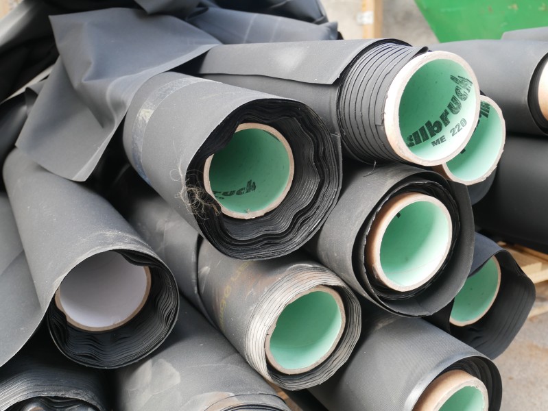 Retalls de membrana monocapa per a impermeabilitzar cobertes, vulcanitzada al 100% i fabricada amb cautxú sintètic EPDM; pot presentar decoloracions i/ algunes porositats.  Les dimensions de longitud i d'amplada són variables, l'espessor oscil·la entre els 0,5 i 2mm.