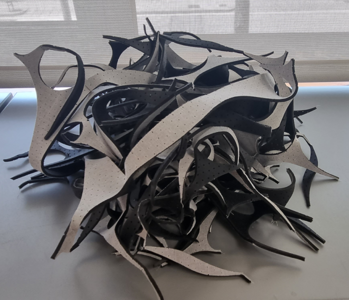 Retalls petits de material compost per làtex negre perforat principalment, amb revestiment tèxtil 100% viscosa.