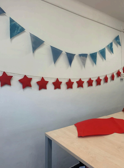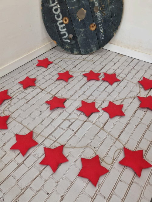 La moqueta de fires, ha servit per convertir-la en centenars d’estels per decoració de Nadal d’enguany.