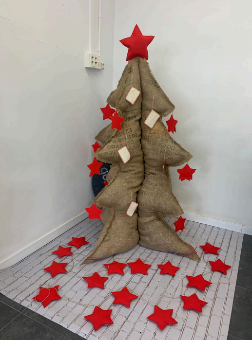 Els sacs de cafè, han servit per transformar-les en bosses, decoració i arbres de Nadal.