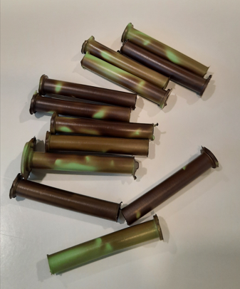 Producció defectuosa de peces de cautxú de color verd, embrutades en el procés del forn.